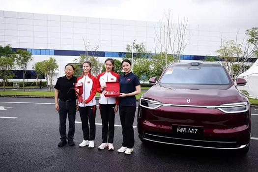 当天,中国国家艺术体操队的五位队员和教练员也来到现场,正式成为全新问界M7的首批车主,定格交车环节的高光时刻。中国国家艺术体操队与问界,是奥运冠军与新豪华汽车销量冠军的跨界合作,双冠携手,共赴新征程。