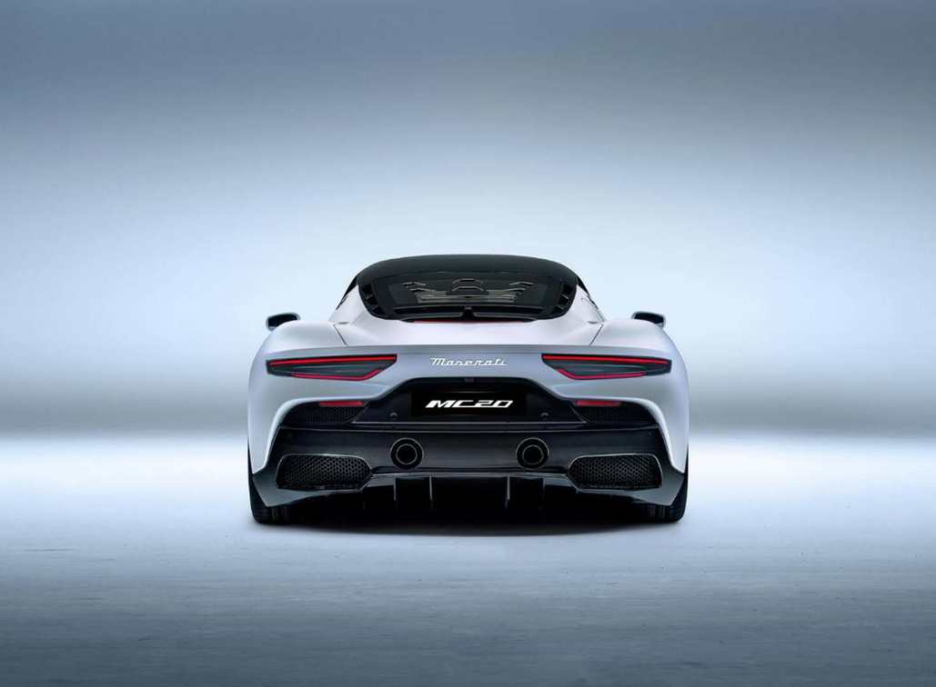 MC20车身外观的优雅线条是由玛莎拉蒂的设计老板克劳斯·布塞领导的团队所做的,他说“他的目标是创造一款超级跑车,而没有这部分市场上常见的巨大进气口和激进的机翼。”空气通过座舱后面的高位进气口进入发动机舱。聚碳酸酯发动机盖包括百叶窗,有助于释放热空气,为新车的空气动力学做准备。车内还配备有与法拉利一体式座舱完全不同的碳纤维座舱。尾部,长长的尾灯搭配夸张的后包围,加上偏中制双边双出排气,极具层次感。