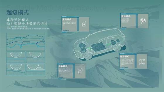 具体来看:日常城市通勤可开启纯电模式,纯电驱动以规避燃油消耗;高速行驶时切换直驱模式,发动机直驱前轮使车辆保持理想转速区间,兼顾动力输出与低油耗;爬坡或急加速场景下,开启“全功率模式”,三电机协同工作以保障动力性能。