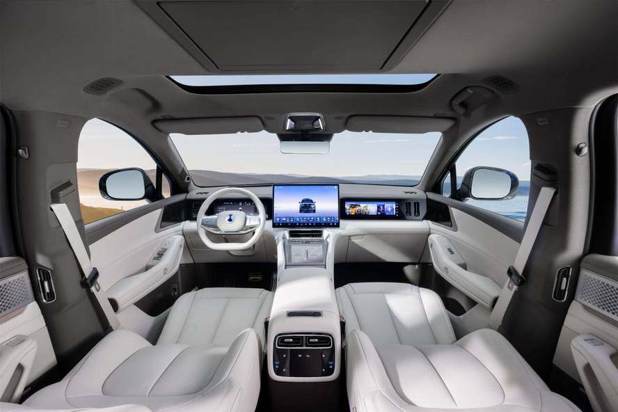 车内采用舒缓线条、温和色调和亲肤材质,提供云锦米、金山棕、铂檀灰三款配色,营造出起居室般的舒适感。