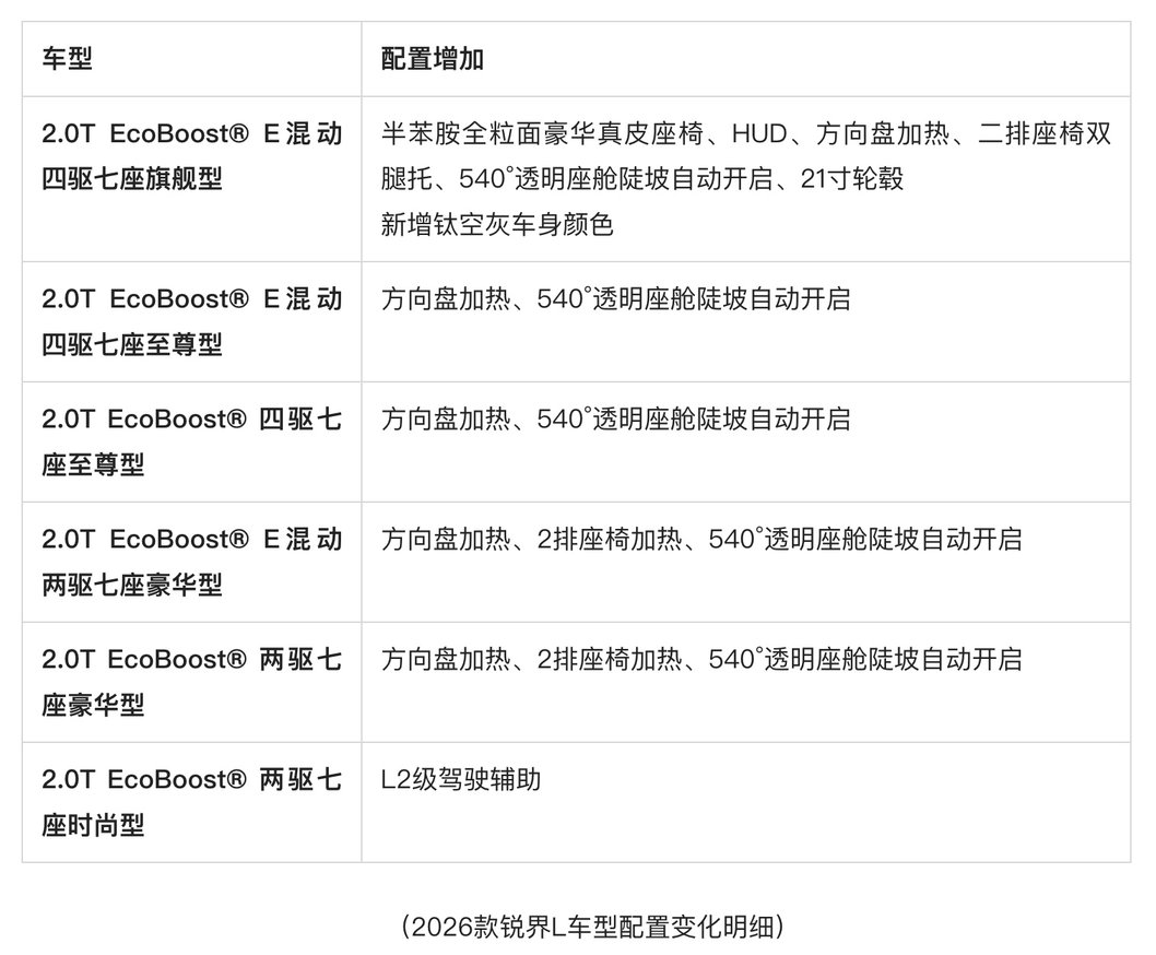 2026款锐界L升级上市!二排头等舱更豪华,指导价22.98万起
