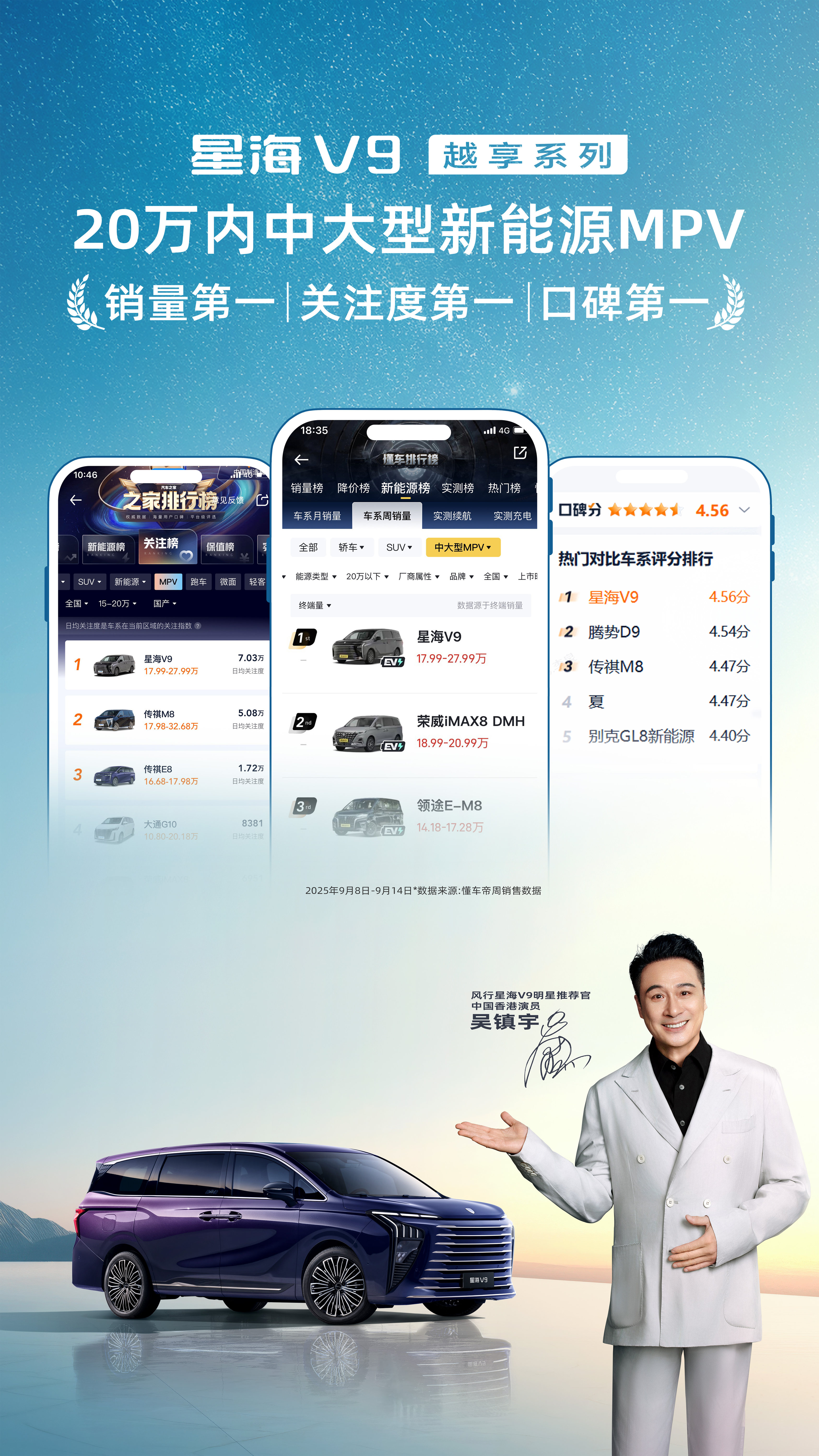 【未来车世界】在信息爆炸的时代,汽车产品的口碑愈发成为消费者决策的关键。近期,东风风行星海V9接连斩获汽车之家、易车、懂车帝三大权威平台MPV口碑榜榜首,以及20万内中大型新能源MPV销量第一、15-20万国产MPV汽车之家关注度第一,成就“口碑大满贯”。这一市场现象的背后,是产品实力获得了最广泛用户群体的认可。星海V9的品质信任感,早在央视财经《硬核智造厂》节目探访其诞生地——东风柳汽绿色智慧工厂时,便已埋下伏笔。节目所展现的71年造车底蕴与近乎偏执的品控体系,为”三榜第一”提供了最具说服力的注脚。