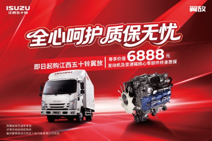 发动机与变速箱堪称轻卡的“心脏”与“命脉”,它们一旦出现故障,不仅会带来高额的维修费用,更会直接影响车辆的运营效率和盈利能力。为解决这一用户痛点,即日起,江西五十铃翼放轻卡推出价值6888元发动机及变速箱核心零部件终身质保政策,为帮助大家全面了解政策详情,我们整理了以下关键问答。