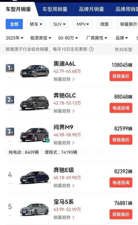 但尽管如此,打开50万级以上高端豪华车销量排行榜,今年1-8月总销量TOP5车型BBA占了四席,还是占据绝对领先地位。