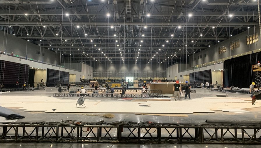 就在我去参加8月初那场主题讨论会的前一天,我来到了杭州大会展中心,当时工人们忙得脚不沾地,他们正在给别的展会施工。