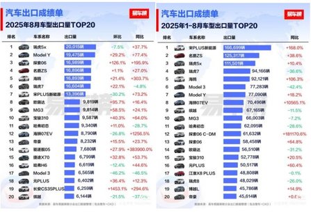 图4:1-8月车型出口排行榜,比亚迪宋Plus新能源独占鳌头