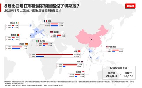 根据易车最新数据显示,8月,比亚迪在西班牙、法国、意大利、爱尔兰、葡萄牙、奥地利、新加坡、泰国、马来西亚等国家销量均超越了特斯拉,在欧洲以及东南亚市场均呈现强劲增长态势:其中,法国8月单月销量达1338辆,同比激增792%;而西班牙市场则以1827辆的销量成绩,实现同比增长414.6%。这种多点开花的市场表现,不仅说明了比亚迪全球化战略的有效性,更以实际数据印证了比亚迪在国际市场的竞争力。