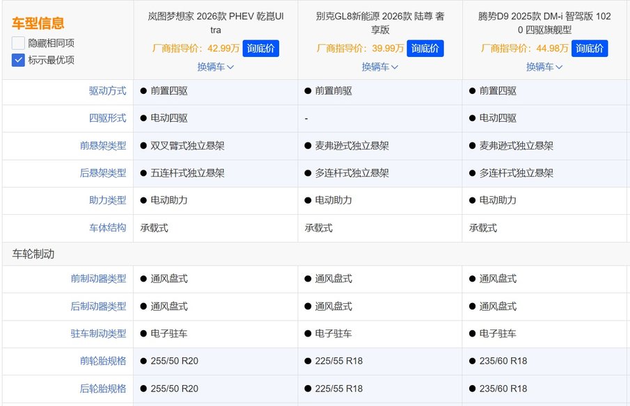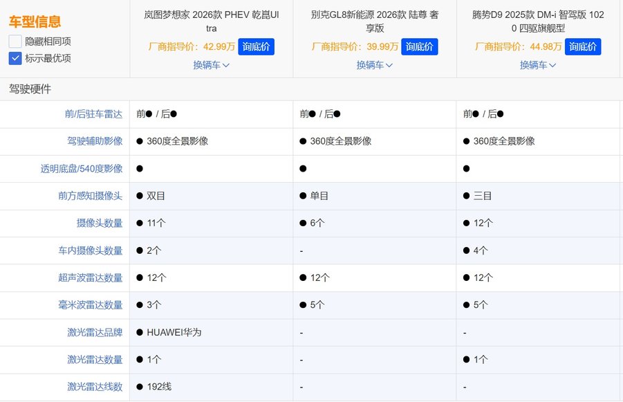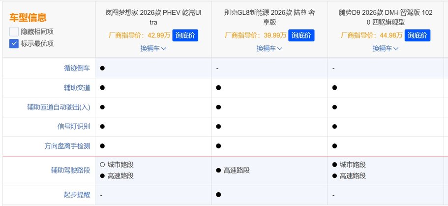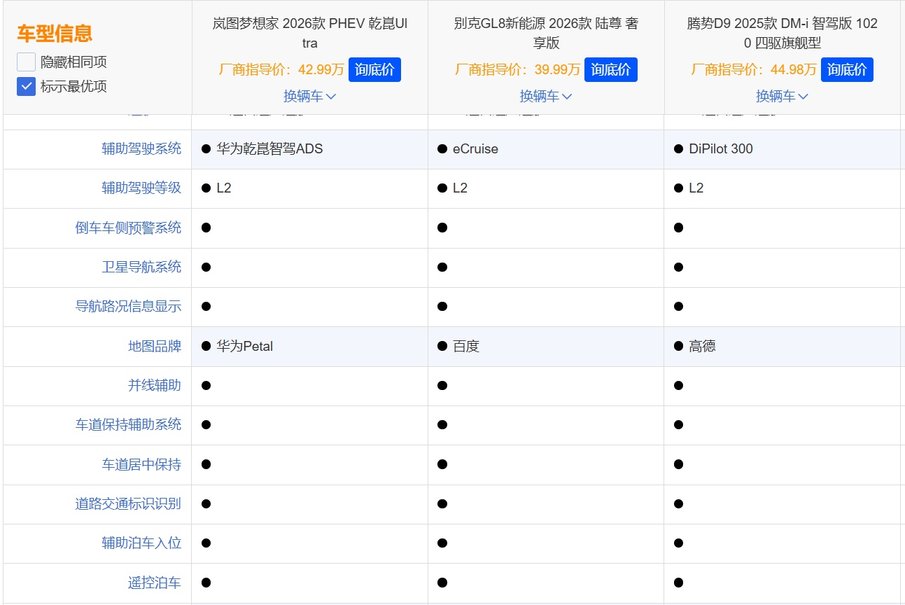 岚图梦想家的“三连冠”并非偶然,2026款上市18小时大定破1万台,顶配乾崑Ultra版订单占比超50%,累计交付量突破13万台。这组数据的背后,是其对用户需求的精准洞察:当GL8 PHEV还在燃油平台上“修修补补”,腾势D9陷入“配置堆砌”怪圈时,岚图已通过“技术重构体验”实现全面超越。