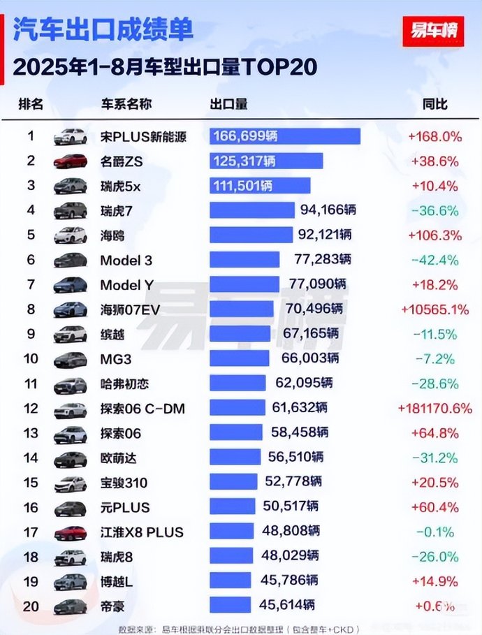 海外市场则成为比亚迪销量增长的“第二曲线”。8月,比亚迪乘用车及皮卡海外销量达80464辆,同比激增146.4%;2025年海外累计销量已达630728辆,同比增长135.7%,占总销量的22%。其中明星车型宋PLUS新能源销量达166699辆,摘得车型出口榜冠军,在国际市场的竞争力不断增加。