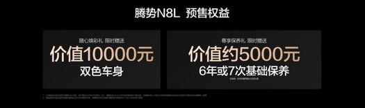 从市场层面看,腾势 N8L 的推出,正在重塑大六座 SUV 市场的竞争格局。此前 30 万级市场中,要么是 “豪华有余、空间不足” 的进口车型,要么是“空间够大、配置缩水”的家用车型,腾势 N8L则以“31.98 万起售+全系标配易三方、云辇-A+预瞄 2.0” 的组合,实现了 “豪华配置不阉割、家庭需求全满足” 的平衡。再加上限时赠送的 1 万元双色车身焕彩礼与5000元基础保养,其性价比优势进一步凸显。
