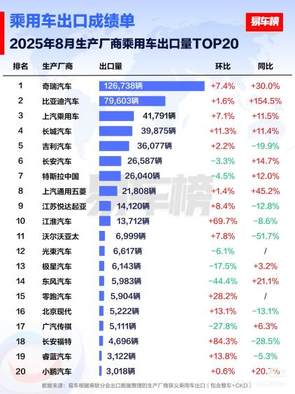 比亚迪乘用车8月出口量破7.9万辆1.5倍同比增速领跑中国品牌出海