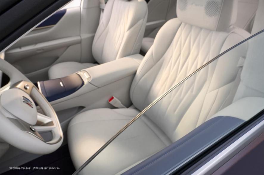 霞紫月白的配色跳出了世纪深棕内饰的“美式厚重”,融入东方美学的内敛——光线变化时,紫色的沉静与月白的通透相互映衬,没有浓墨重彩的炫耀,却在商务洽谈时显露出“低调有品”的格调,让座舱成了“能静下心来的移动茶室”。