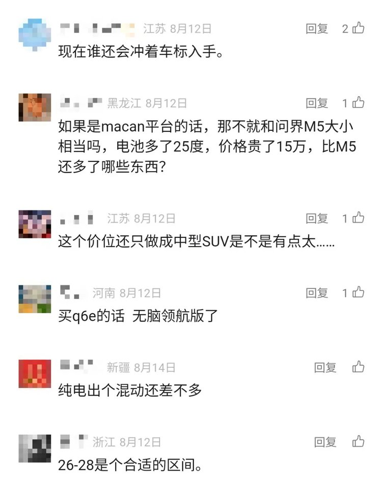 不少小伙伴认为这台车品牌溢价有些高,比当下的中国市场同级电动车贵。甚至有个别小伙伴表示,26~28万才是它的合理价格区间: