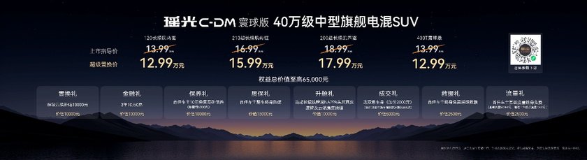 瑶光C-DM寰球版的上市,完善了星途在混动SUV市场的产品布局。目前瑶光C-DM系列已形成"两驱经济+四驱性能"的产品矩阵,以40万旗舰电混SUV产品素质,全面覆盖12-20万元主流混动SUV市场。
