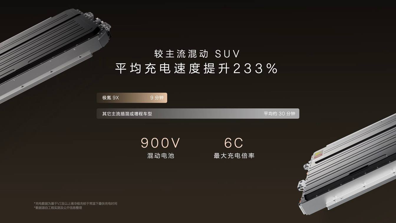 极氪9X全系采用900V大电池方案,支持6C超快充