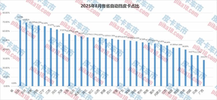 从地区销量来看,地域需求分化明显。北京、吉林、安徽等地占比突出,北京以72.08%的自动挡占比居首,吉林69.25%、安徽66.58%紧随,这些地区或因消费观念先进、用车场景多元,对自动挡皮卡接受度高。而广西、云南、贵州等地则占比明显偏低(广西28.62%、云南 33.72%),手动挡仍有较大市场空间,反映区域消费习惯、经济水平等因素对皮卡挡位需求影响显著,车企需针对性布局区域市场,适配不同地域消费偏好。