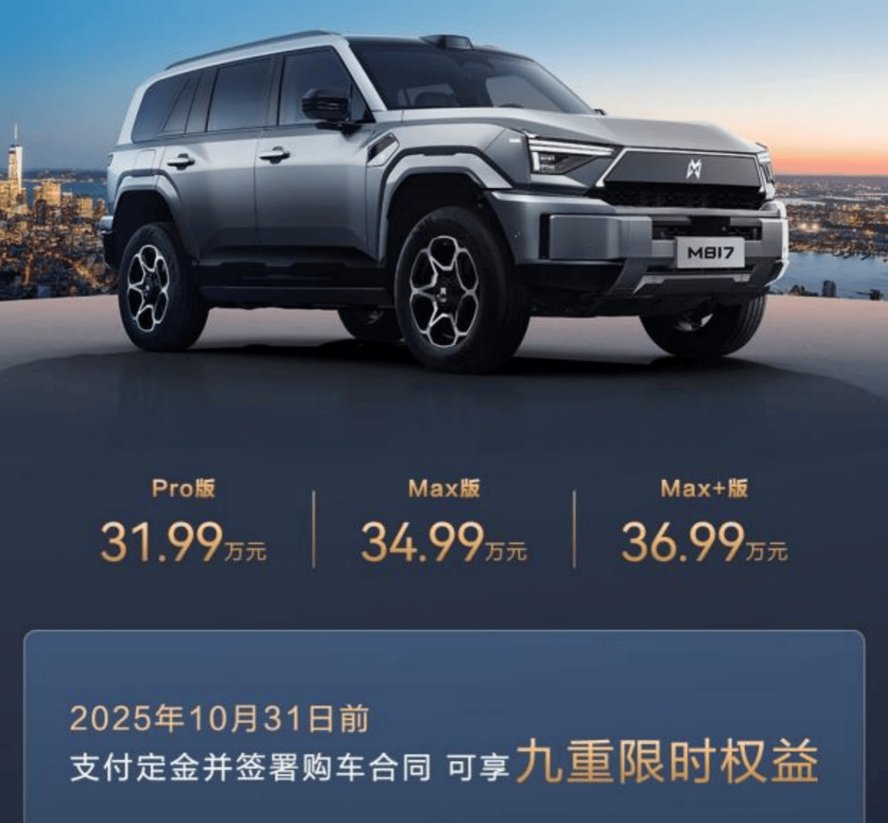 智能越野新物种登场,猛士M817 Max+版36.99万元起售