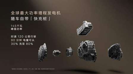 此外,极氪9X还搭载了全球最高功率145千瓦增程发电机,峰值功率高于多数国网快充桩。在时速120公里高速馈电工况下,SoC从30%到80%仅需90分钟,边开边充电,越跑电越多。