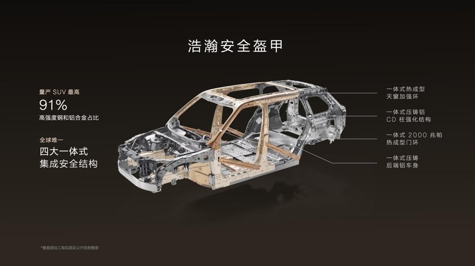 车身高强度钢铝占比91%,车身扭转刚度41600N·m/deg,通过了业内罕见的四向连环碰撞测试。智驾方面,千里浩瀚H7和H9两套方案覆盖了城市、泊车、高速全场景,最高算力达1400TOPS,行业首发红外AEB功能,让车辆在浓雾环境下也能主动刹停。