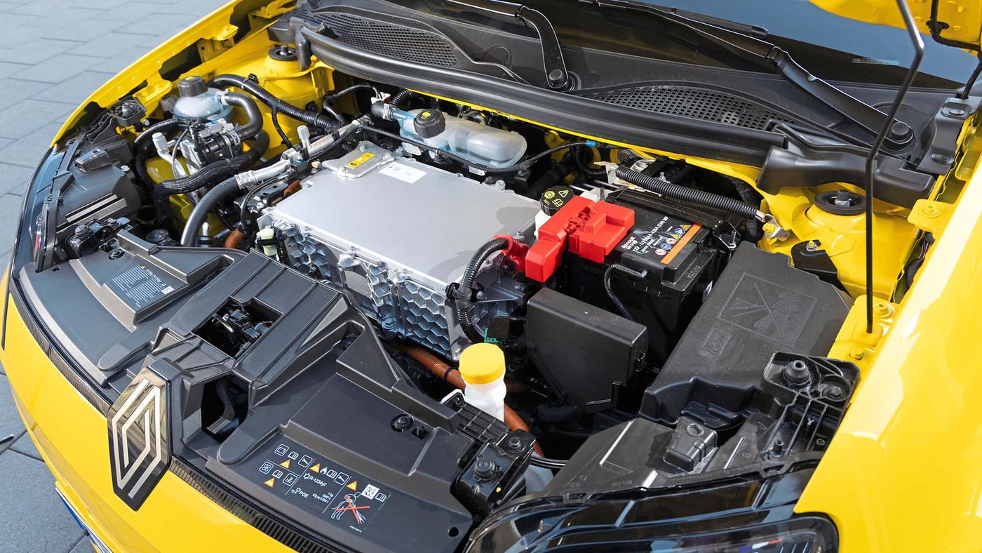 测试车搭载的是最强版本的缠绕转子同步电机(无永磁体),源自梅甘娜(Mégane)E-Tech,并经过缩短3厘米的优化以适应R5小巧的机舱,同时减重15千克,输出功率为110千瓦,比梅甘娜E-Tech少了50千瓦,但依然足够,并使其成为史上最强的量产R5。同时,新车还会衍生有70千瓦和90千瓦的低功率版本。