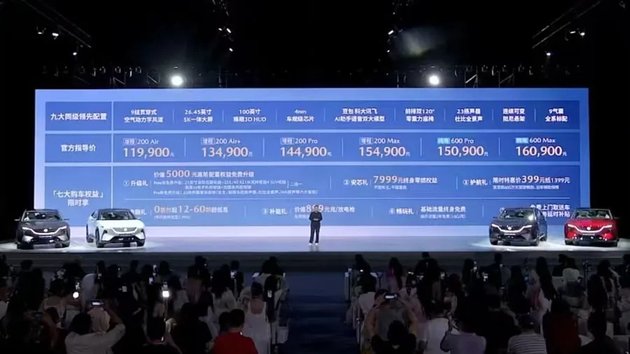 车内采用简约设计风格,配备有26.45英寸5K悬浮一体式屏幕,搭载了流媒体后视镜、100英寸AR-HUD以及后排控制屏。该车应用双辐式平底方向盘和怀挡式换挡机构,还搭载了23个扬声器音响以及256色氛围灯,副仪表台位置还设计有手机无线充电功能。新车搭载前排双120度零重力座椅,并拥有四座通风和加热功能。储物空间拥有126L前备箱空间以及最大可扩充至2036升的后备箱空间。智能驾驶辅助方面搭载L2驾驶辅助系统,拥有1个800万像素高清摄像头、4个环视摄像头、5个毫米波雷达、12个超声波雷达,覆盖200+高频场景,拥有30+行泊一体辅助功能。
