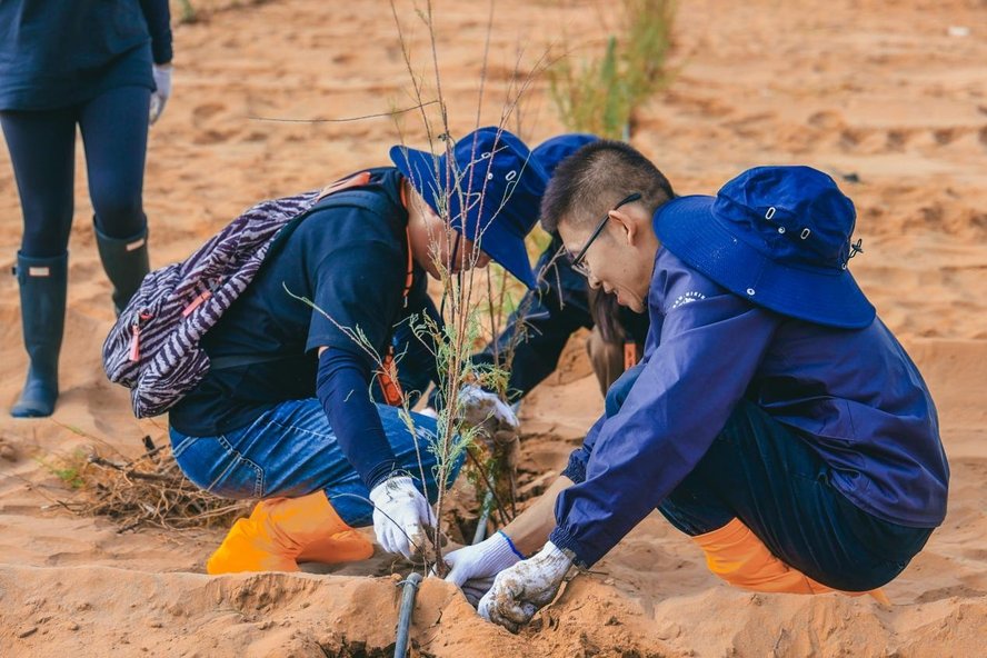 一路向前,福特探险者不仅以实力穿越“死亡之海”,更将探索的热情转化为守护的责任。为助力锁边巩固与生态修复,长安福特捐赠10000余棵幼苗,带领车主用户深入塔克拉玛干腹地锁边扩绿。在治沙专家的指导下,福探长们系统学习科学治沙技术,并亲手栽种红柳,以实际行动为构筑“绿色长城”贡献力量。