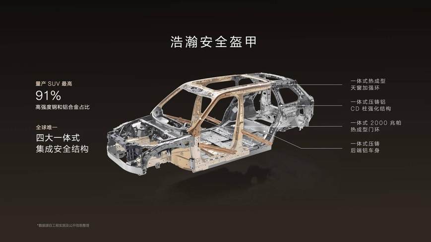 依托超标安全标准,极氪9X白车身高强度钢与铝合金占比高达91%,搭载“四大一体式集成安全结构”,实现41600N·m/deg车身扭转刚度,并通过单车四向连环极限碰撞测试。