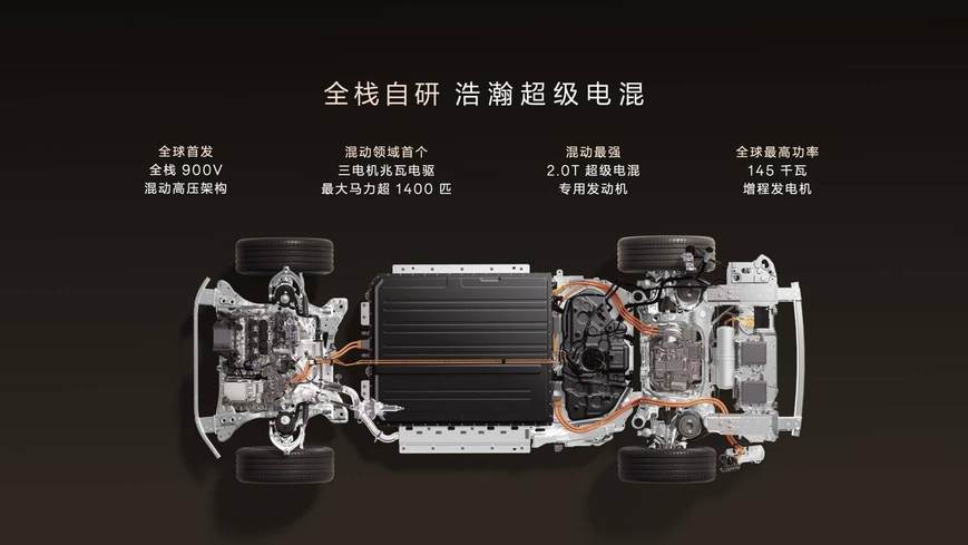 极氪自研浩瀚超级电混SEP,S代表超级能力,E代表极致的纯电体验,P代表强悍动力,是在新能源动力技术上实现的一项重大突破。凭借浩瀚-S架构的全栈900伏混动高压优势,和自研浩瀚超级电混,极氪9X带来了“满电快、馈电快、续航长、充电快”的极致纯电体验。