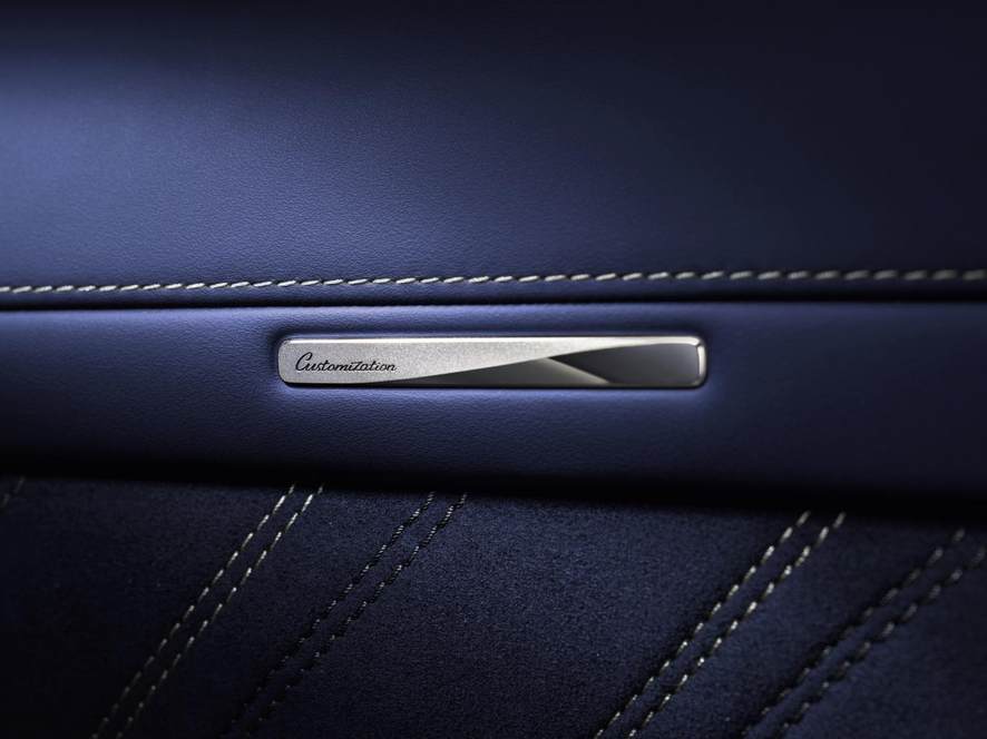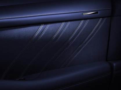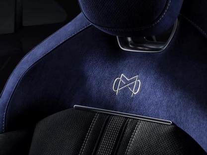 工艺细节与专属设计进一步凸显定制感。座椅采用超豪华汽车内饰常见的绗缝工艺,创新运用高级时装的 “七针同步” 绗缝技术,线间距精准控制在 1/8 英寸,整齐划一;专属门板绗缝同样精密,对缝线间距、平行度及手工包覆对齐度要求极高,每一处都彰显匠心。座椅刺绣 LOGO 以 1862 针柔软绣线勾勒 “M+∞” 图案,寓意 “创造无限可能”,让专属感融入细节。