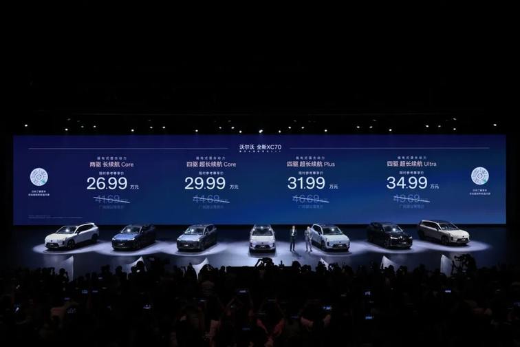 全新XC70共推出四个配置版本,从26.99万元的两驱长续航Core版,到34.99万元的四驱超长续航Ultra版,形成了清晰且富有竞争力的价格梯度。而即便是入门级的Core版本,也已具备了116公里纯电续航与超1200公里综合续航的硬核实力,足以满足城市通勤与跨省旅行的多元化需求。