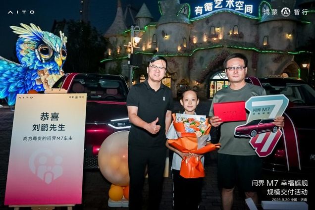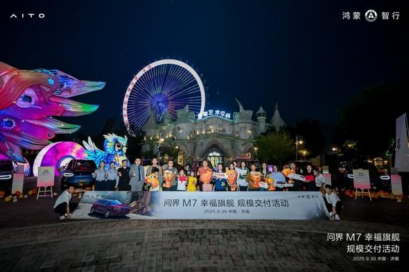 2025年9月30日,临近双节之际,位于山东济南融创茂有循艺术空间的气氛热烈而庄重,新问界M7首批车主交付仪式在此盛大举行。自9月23日正式上市后,仅仅7天时间新问界M7已实现大定突破60000台,全国首批用户的车辆交付已同步开始。其中济南地区首批8台新车正式驶入车主生活,标志着该车型在济南市场迈出了坚实一步。