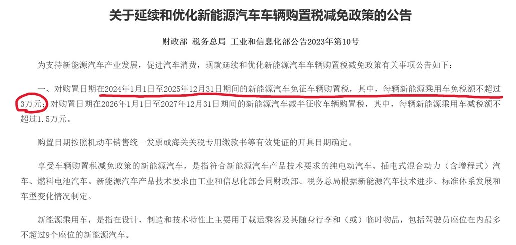 而根据国家相关政策,对购置日期在2024年1月1日至2025年12月31日期间的新能源汽车免征车辆购置税,每辆新能源乘用车免税额不超过3万元。也就是说如果你在2025年12月31日之前买新能源车,并且车价不超过33.9万元的,就可以享受免征购置税,一分钱也不要出。
