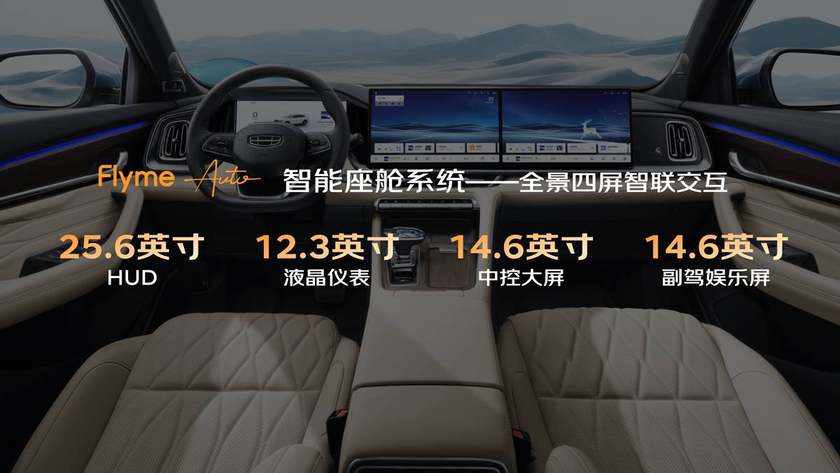 智能座舱:Flyme Auto系统+7nm高通8155芯片,25.6英寸HUD+双14.6英寸大屏,支持四屏联动。语音助手接入了Deepseek大模型,你说“我有点热”或者“去看看莫高窟”,它秒懂。