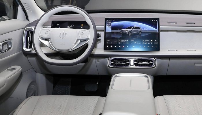 内饰方面,零跑B10也采用了简约的设计风格,扁平化的空调出风口,支撑性不错的座椅,多功能方向盘,干净的中控台,丰富的储物槽等,既注重实用性也有审美感。集合了很多功能的中控大屏,也显示出一定的科技感。