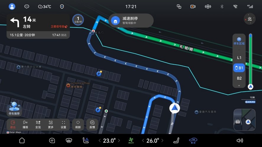 同时,还支持在车位一键启动“领航辅助(NCA)”,园区内外导航能实现丝滑衔接,进出园区时无需手动切换园区与城区界面,全程操作连贯不卡顿,减少操作上的繁琐度。