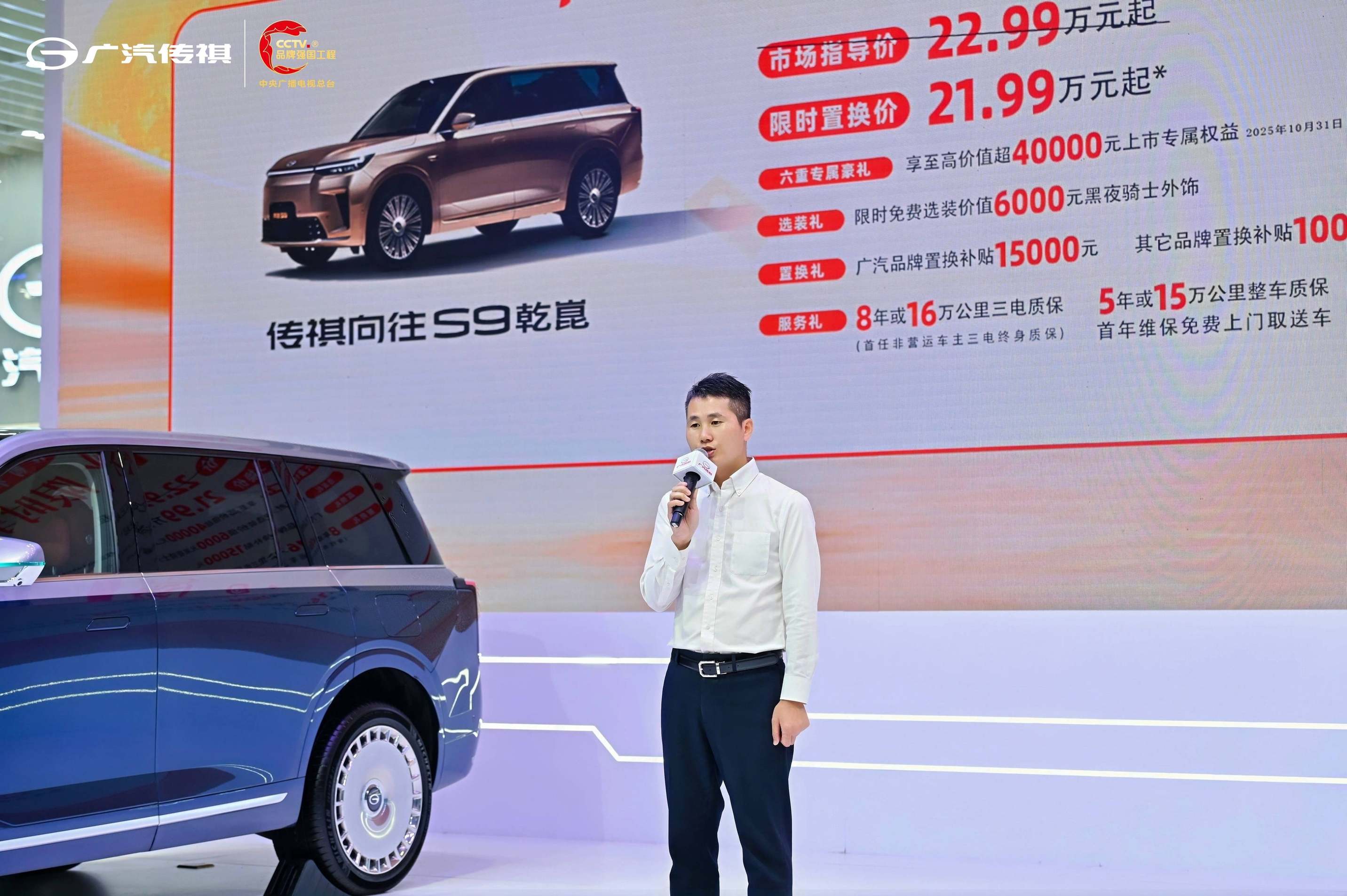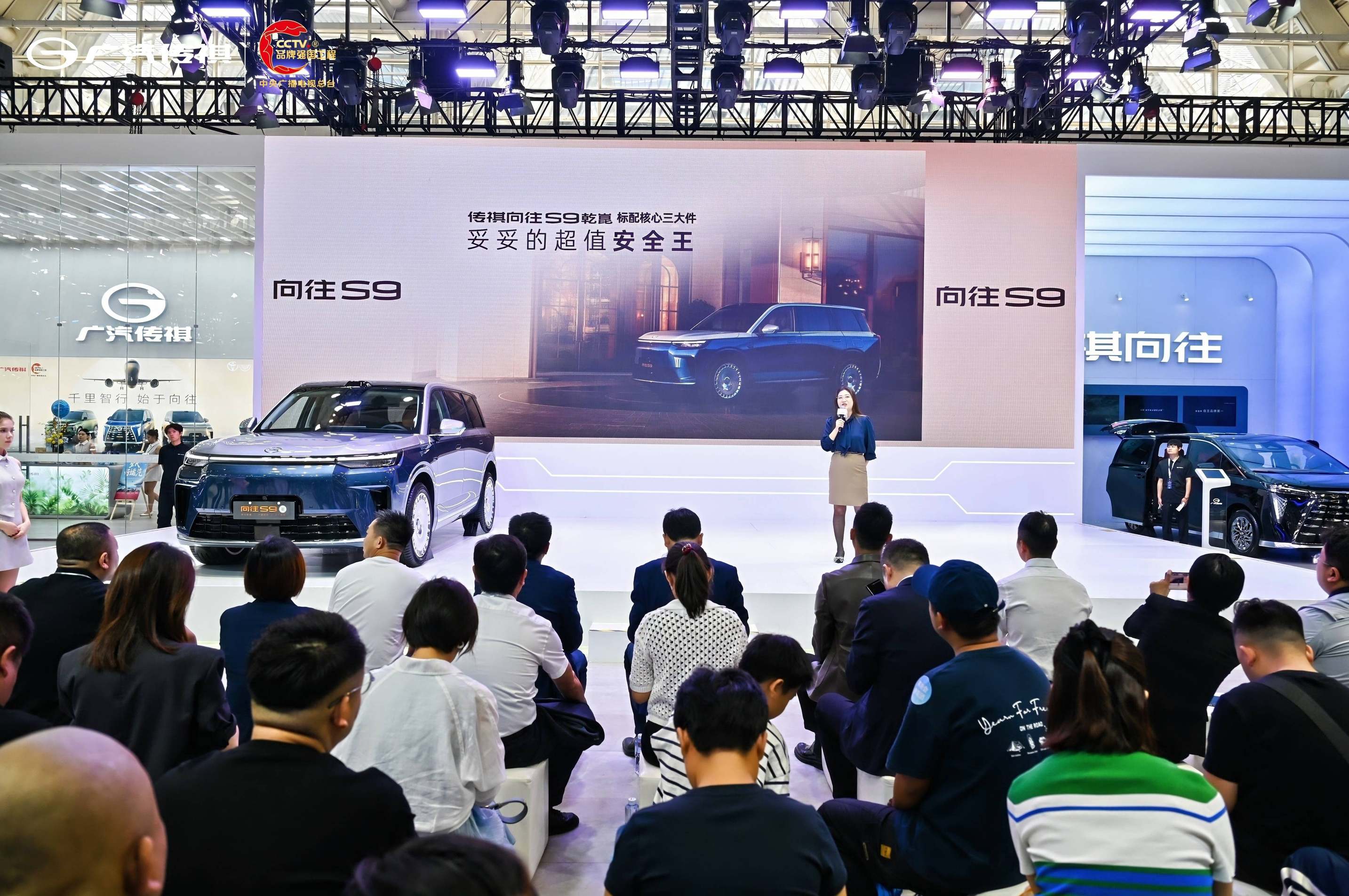 9月30日,广汽传祺向往S9在天津十一车展上举办了区域品鉴会,共推出4款车型,提供5座和6座版本,上市指导价22.99-25.99万元,限时置换价21.99-24.99万元。同时赠送的上市礼包综合价值超40000元。向往S9定位为一款插混中大型SUV,全系标配华为乾崑ADS 4 Max 超阶版、鸿蒙座舱HarmonySpace 5、宁德时代44.5度骁遥超级增混电池、广汽超级智电四驱等等,基本上做到了入门即豪华。