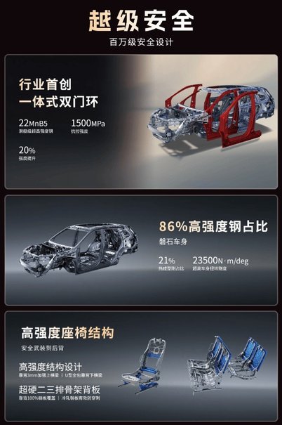 车身扭转刚度高达23500 N·m/deg,打造百万级车身安全。