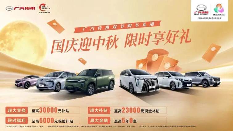 作为中国汽车行业的领军品牌,广汽传祺以国庆、中秋双节为契机,为消费者献上一场购车狂欢盛宴。从豪华舒适的MPV到硬核智能的SUV,再到激情四射的家轿,传祺全系车型覆盖多种出行场景,搭配限时优惠福利、超大置换金融补贴和专属礼包,助力每一位消费者轻松圆梦爱车,畅享健康、幸福的未来生活。