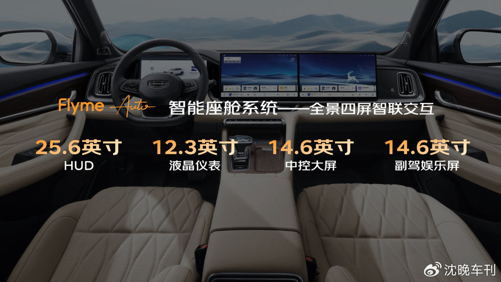 智能座舱方面,全新东方曜系列搭载用户量已破百万的Flyme Auto系统。基于7nm高通8155芯片的算力加持,25.6英寸全彩HUD抬头显示、双14.6英寸超窄边框高清大屏等支持四屏联动,彻底打破燃油车的硬件代差。基于Alive Design设计理念的极简交互,支持全面屏手势、一语即达等功能,让科技不再是冷冰冰的参数;以“车载常用APP、手车互联、浏览器与无界空间”构建的“车联万物”生态矩阵,全面兼容Flyme Link、Hicar、Carlink、Carplay(后续OTA)等主流互联协议,无论你是哪类用户,都能真正实现“想用就用,想玩就玩”。而全系标配深度融合Deepseek大模型的AI语音系统,更是一位懂车、懂路、更懂你的出行伙伴,用户仅需简单的“我有点热”或“去看看莫高窟”,全新东方曜系列都能即时响应,重新定义燃油智能座舱的天花板。