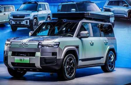 钛7定位大五座SUV,共推出四款车型,售价区间17.98万—21.98万元。外观采用钛能前脸与三段式车身设计,近5米车长搭配7种配色及双拼色选项,气场强大。