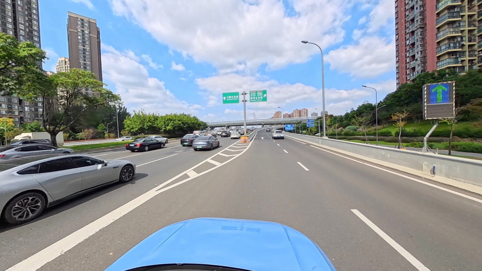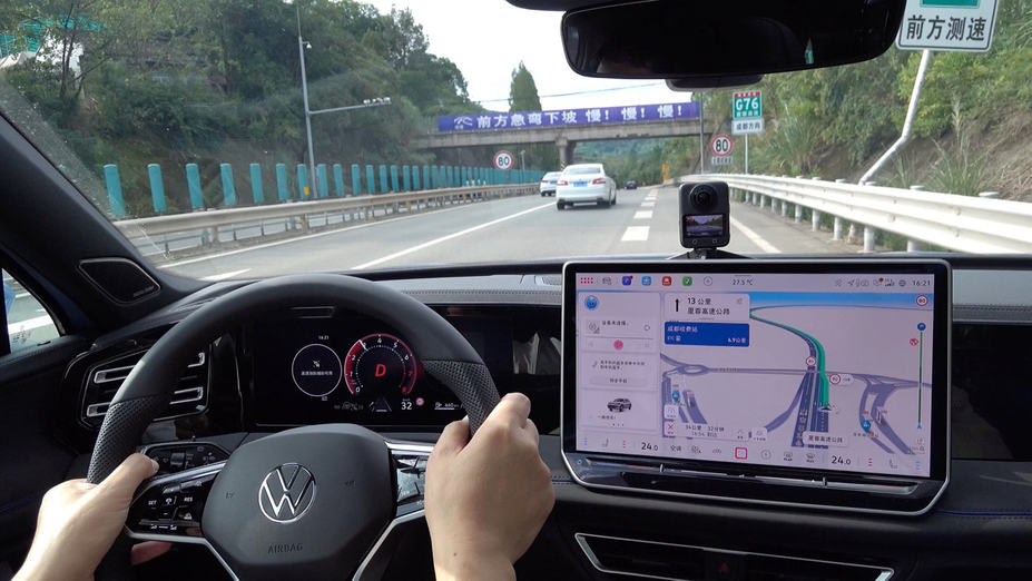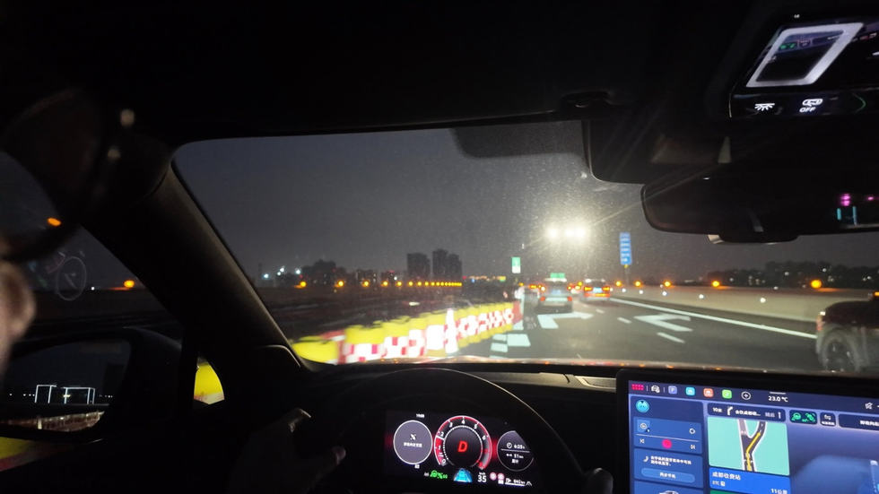 厦蓉高速龙泉山段,弯多路窄,它过大弯会自动控速;渝蓉高速,连接成渝的大动脉,车多速度快,它能自动变道超越慢车,选择车流快的车道;经绕城高速回城,有施工路段,它能绕行避障,对桩桶水马的探测准确,走位也很自然不生硬;三环路二环路,车辆汇入驶出频繁,且多拥堵,它能比较从容应付,如果你有动作,它也会顺你心意,不会和你抢方向盘,而且你停止操作后,它会自动恢复,切换柔和流畅,人机共驾挺和谐的。