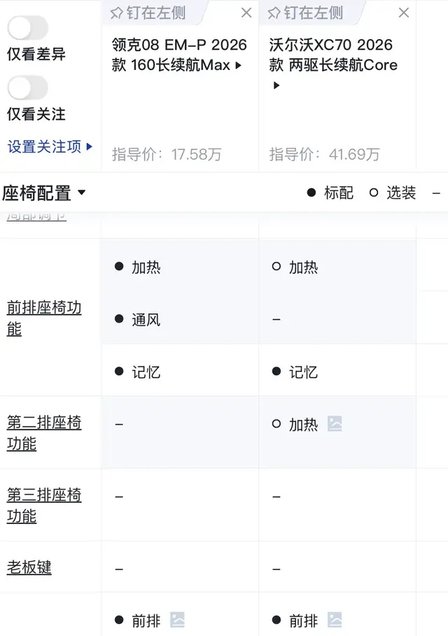 《新车|自嗨还是套路?沃尔沃XC70“限时参考尊享价”不如来个“一口价”》一文把沃尔沃XC70与2025款领克08EM-P进行对比,而最新上市的2026款领克08EM-P比沃尔沃XC70更为领先。