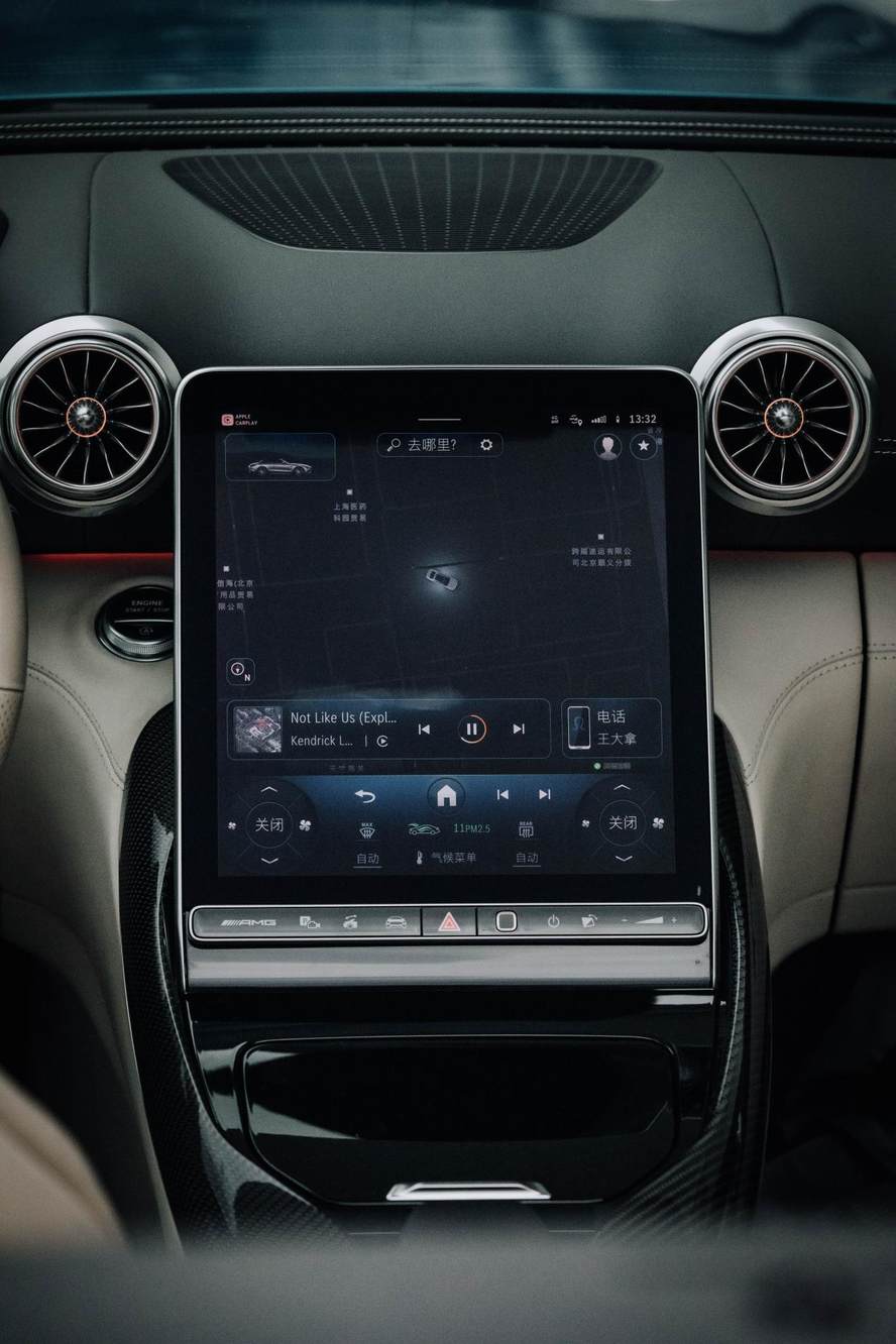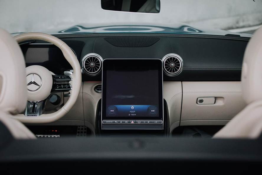 在触感层面,AMG一如既往地讲究。真皮、金属饰板与精致缝线共同勾勒出仪式感。AMG运动座椅采用菱形缝线设计,兼顾支撑与舒适。配合头颈暖风系统,让敞篷驾驶也能在寒冷天气中从容优雅。