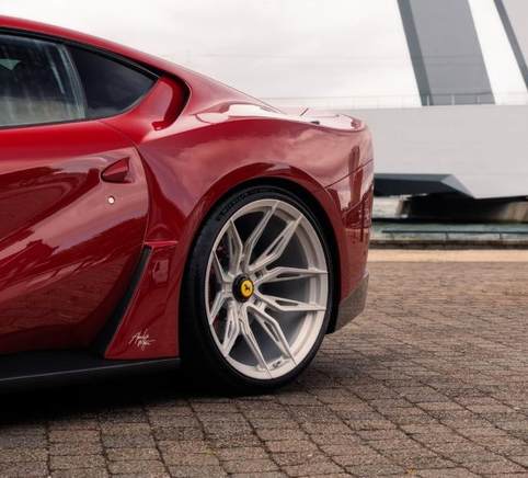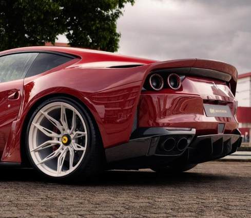 从Novitec发布的官图来看,我们已经能发现这台法拉利812改了车头前杠,更夸张的大嘴通风口被安排上,侧裙也变得更具动感,后轮眉前部进行了开口设计,车尾后杠设计了新的扩散器,但造型与原厂接近,轮毂样式也是新的。
