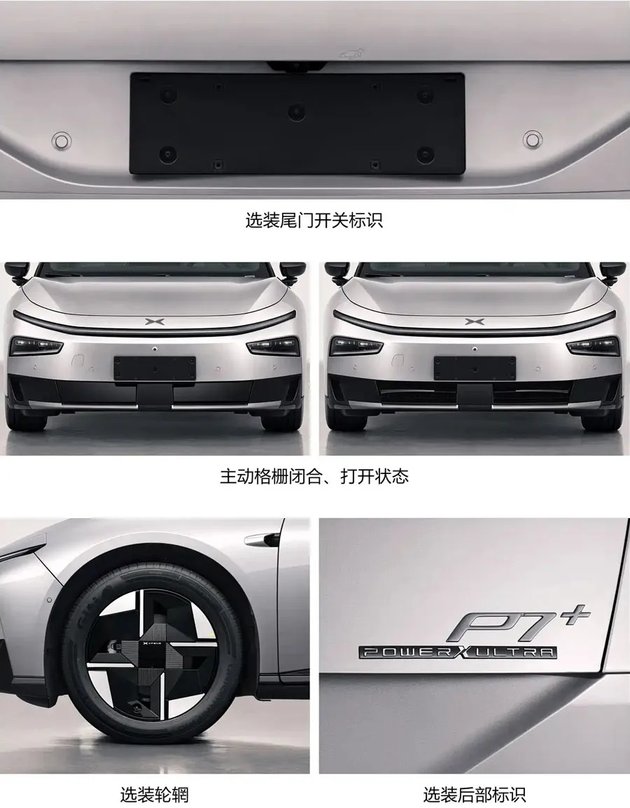 近日,从最新一期工信部目录中发现了小鹏P7+增程版车型的申报图,该车整体设计基本与在售的纯电版车型保持一致,仅在细节上有所升级,下包围处拥有更大尺寸的主动式通风口设计,可帮助发动机提供更好的散热效率。车尾针对尾灯进行了调整,下方也采用贯穿式设计。