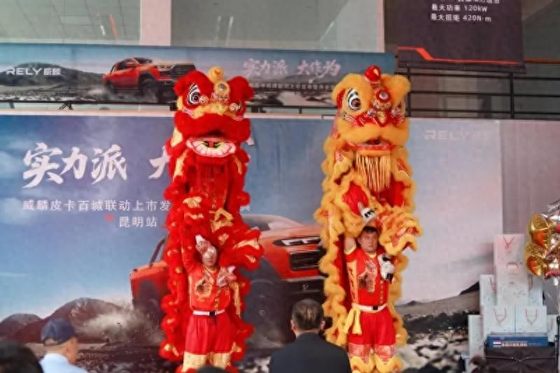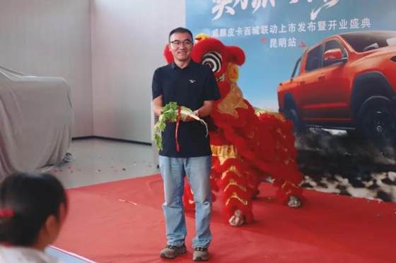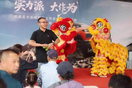 活动伊始,一场精彩绝伦的传统舞狮表演瞬间点燃了现场气氛。在这热烈的氛围中,RELY威麟皮卡云南健汇科技有限公司总经理曹孟华先生手持朱砂笔,为可爱的狮子点上炯炯有神的眼睛。仿佛在向世界宣告:云南健汇4S店正式开业,威麟品牌将在这片土地上开启新的辉煌征程!