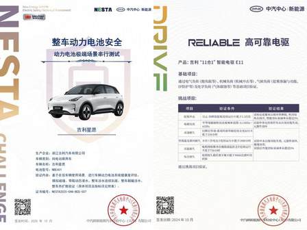 星愿采用的11合1智能电驱效率高达89.2%,体积仅66L,同时通过200万公里实测与中汽研《高可靠电驱认证》。电池快充从30%-80%充电仅需21分钟,零下30℃到55℃环境下依然能即停即充,循环寿命验证标准提升至国标2倍。在中汽中心测试中,行驶8.4万公里后的车辆仍能完成6大极限挑战,包括海水腐蚀、泥水冲刷和外部火烧测试。对于一款6万元级别的车来说,这种验证强度几乎前所未有。
