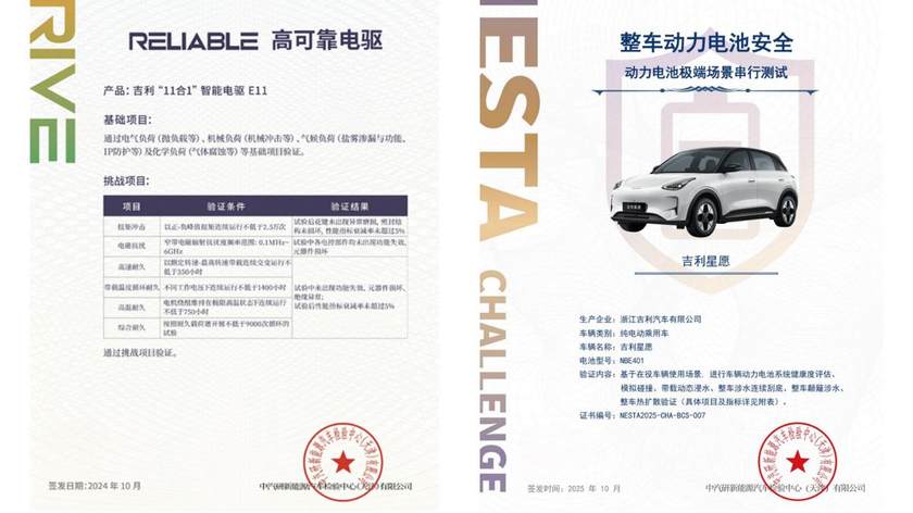 比如,三电系统的稳定性用3000小时台架耐久、200万公里真实路试测出来,再加上在A0级市场里目前唯一拿下了中汽研“高可靠电驱”权威认证。