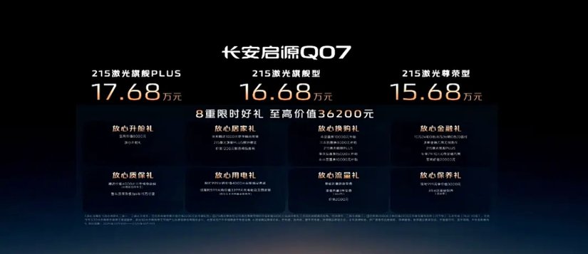 长安启源Q07天枢智能激光版上新,15.68万起,空间智驾都有