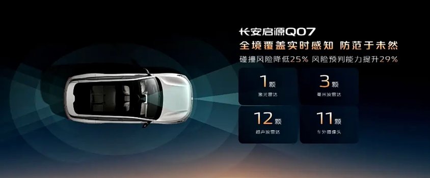 开车出门,安全是重中之重。在这方面,长安启源Q07天枢智能激光版配备了1颗激光雷达+ 3颗毫米波雷达+ 12颗超声波雷达+ 11颗摄像头,就是为了让智能驾驶辅助系统足够好用,能够清楚识别200 米外的车和行人,哪怕是下雨天黑,也没有问题。